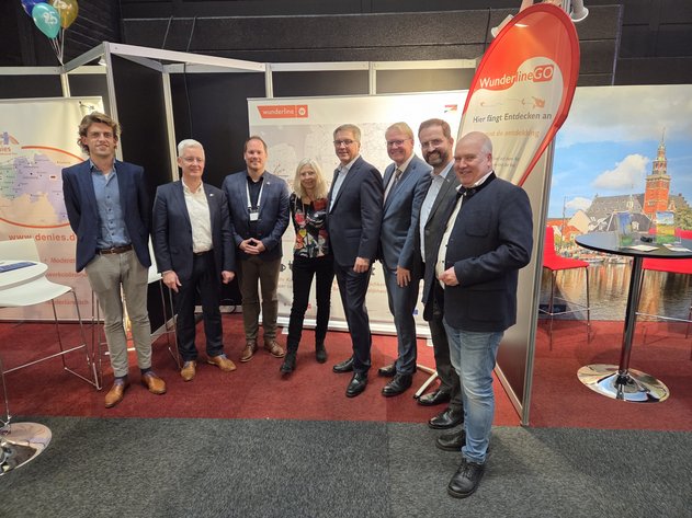 Bm Horst Stadt Leer, HGF Deinhard IHK Ostfriesland Papenburg, Jansen Landesbeauftragter Niedersachsen, OBM Krogmann Oldenburg, Bettina Fabich Wunderline, Vincent ten Voorde directeur EDR, LR Groote Landkreis Leer en Thijs Zondag Wunderline projectleider.